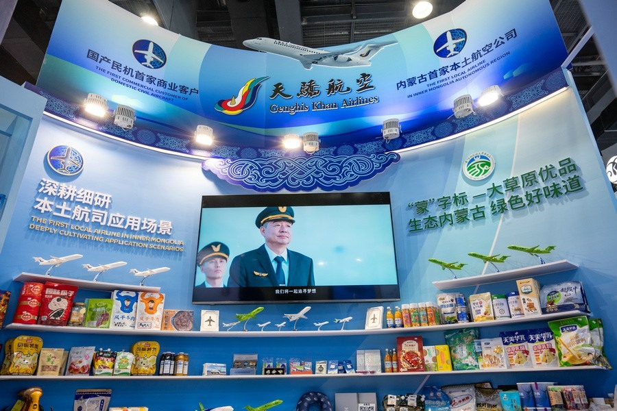 本次會(huì)展天驕航空以“天驕新風(fēng)貌 聚焦內(nèi)蒙古”為主題,以濃郁的內(nèi)蒙古元素為特色,突出天驕航空作為內(nèi)蒙古自治區(qū)本土航空公司在完善區(qū)內(nèi)航線網(wǎng)絡(luò)、助推民航產(chǎn)業(yè)落地、服務(wù)地方經(jīng)濟(jì)發(fā)展等方面做出的努力,以及作為全國(guó)首家運(yùn)營(yíng)純國(guó)產(chǎn)民機(jī)機(jī)隊(duì)的航空運(yùn)輸企業(yè),在國(guó)產(chǎn)民機(jī)的商業(yè)運(yùn)營(yíng)、品牌推廣等方面進(jìn)行的探索。
