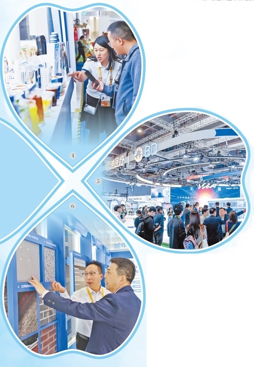 圖④:觀眾在達(dá)能公司的試飲臺了解并體驗新款飲品。達(dá)能公司供圖 圖⑤:觀眾在碧迪醫(yī)療展臺前參觀。碧迪醫(yī)療供圖 圖⑥:工作人員在介紹立邦全場景建筑涂裝解決方案。本報記者 宦 翔攝