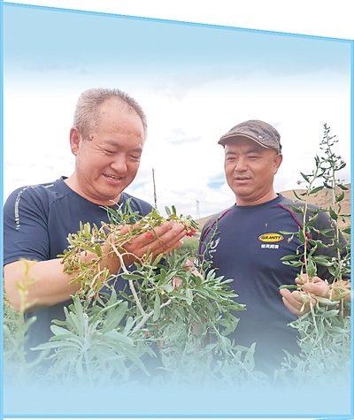 枸杞采摘期,吊堡子村駐村第一書(shū)記李宗仁(左)來(lái)到枸杞地里查看枸杞產(chǎn)量情況。