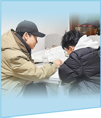 文店村駐村第一書(shū)記郭菲(左)在村民家中給孩子輔導(dǎo)功課。