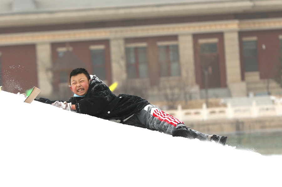 小朋友在如意河新華大街南側(cè)冰雪場(chǎng)體驗(yàn)滑雪樂趣  北疆新聞網(wǎng)、北疆新聞客戶端記者 張楊攝影