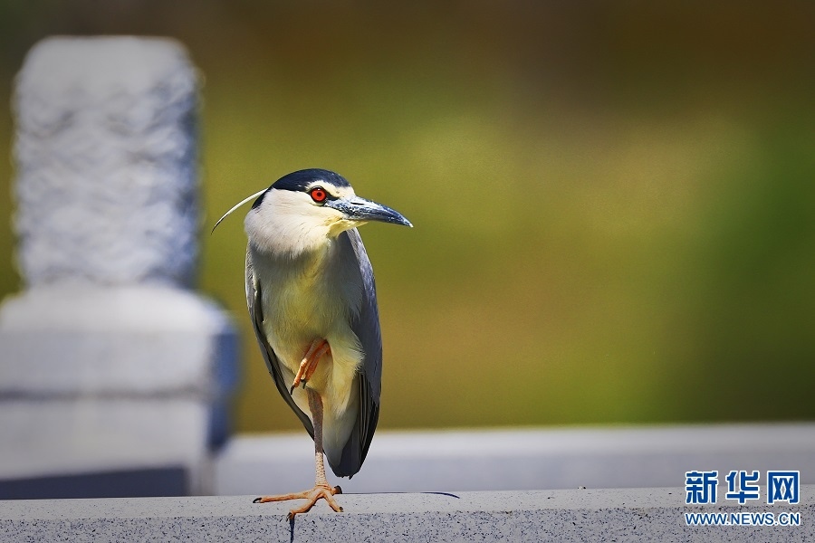 5月15日,河南省商丘市睢陽區(qū)古城南湖岸邊,一只夜鷺單足而立。
