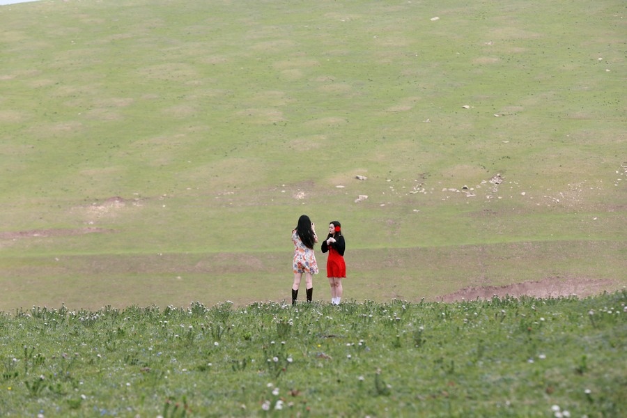游客在草原上拍照打卡  記者 張楊攝影