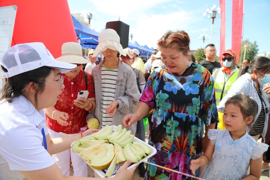 北疆新聞磴口7月18日電 7月18日,以“建設(shè)富饒美麗、開放包容新磴口”為主題的磴口縣慶祝中華人民共和國成立75周年暨第三十二屆華萊士節(jié)開幕。啟動(dòng)儀式上,舉行了華萊士瓜品評(píng)、特色農(nóng)產(chǎn)品展示等活動(dòng)。