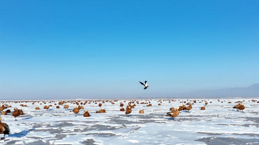 隨著天氣轉(zhuǎn)暖,冰雪消融,土默特左旗的海流水庫(kù)迎來(lái)了大批北歸的候鳥(niǎo)。它們或在水面上嬉戲覓食,或在空中自由翱翔,為初春封凍的水庫(kù)增添了一抹靈動(dòng)的色彩。
