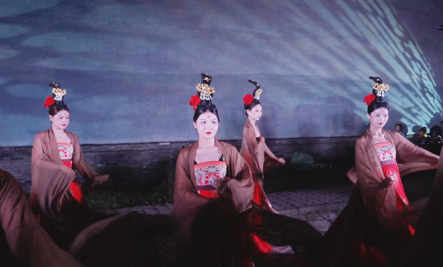 傍晚6時(shí),活動(dòng)在實(shí)景舞蹈《古城賞月》中拉開(kāi)帷幕。演員們身著飄逸漢服,伴隨悠揚(yáng)古樂(lè)翩躚起舞,再現(xiàn)古代市井賞月之景,瞬間將觀眾帶入詩(shī)意盎然的歷史長(zhǎng)河。隨后,晉劇《繁華》以高亢激越的唱腔、細(xì)膩傳神的表演,展現(xiàn)了晉地戲曲的獨(dú)特韻味,贏得陣陣掌聲。