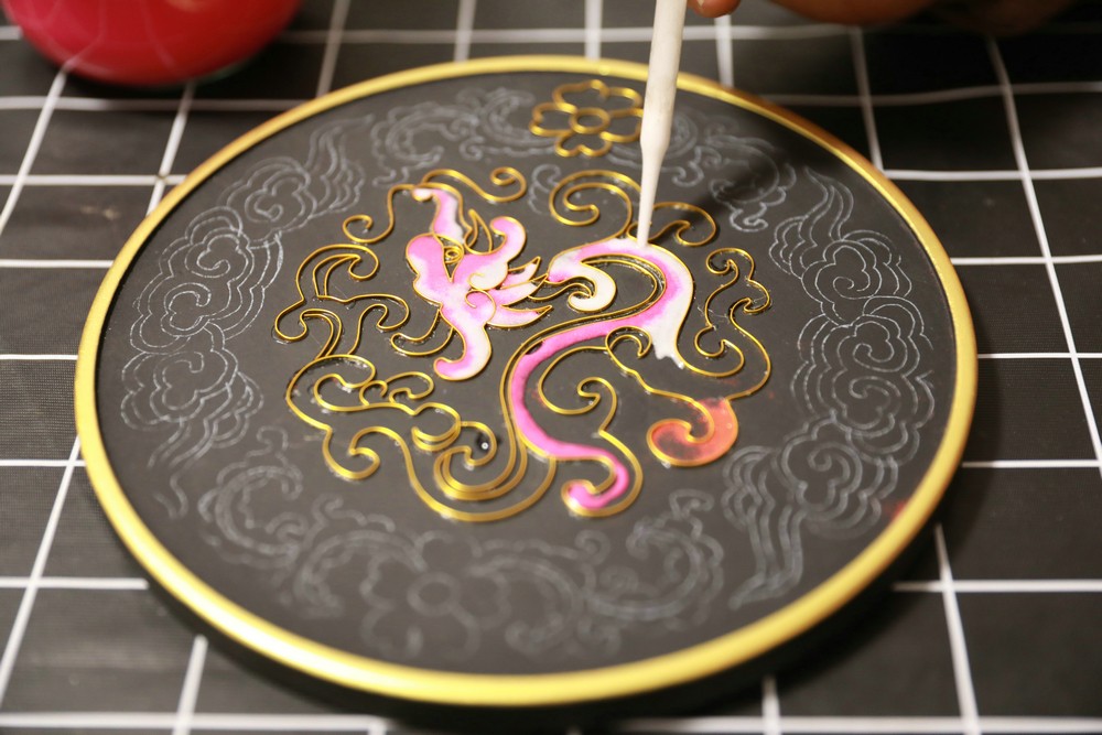 姬增正在制作景泰藍(lán)掐絲琺瑯畫(huà)
