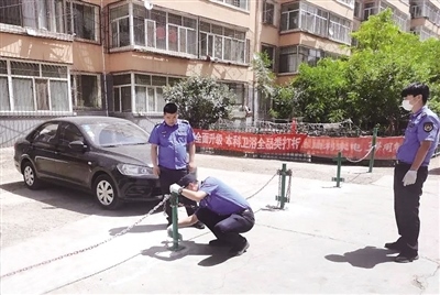 當日,記者來到該小區(qū)看到,一些住戶在公共區(qū)域私自打地樁,用鐵鏈圈出簡易的“私人停車場”,占地100多平方米。居民劉先生告訴記者,小區(qū)內的公共停車位本來就緊張,可就在幾個月前,突然有人私自安了地樁連起了鎖鏈,建了個“私人停車場”,占用的全是小區(qū)公共用地。居民多次找圈地的住戶溝通,要求他們拆除,可對方態(tài)度惡劣,拒不拆除。