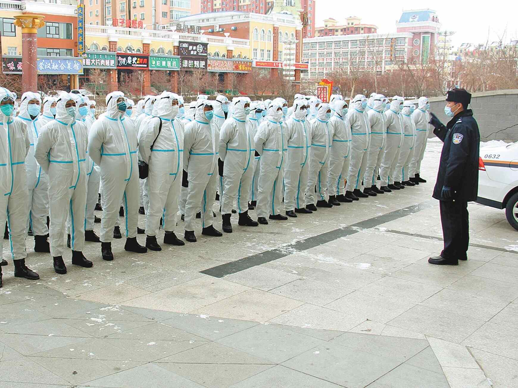 11 月28 日,扎蘭屯市公安局緊急抽調(diào)100 名精干警力組成疫情防控突擊隊,馳援滿洲里市,守護人民安全。