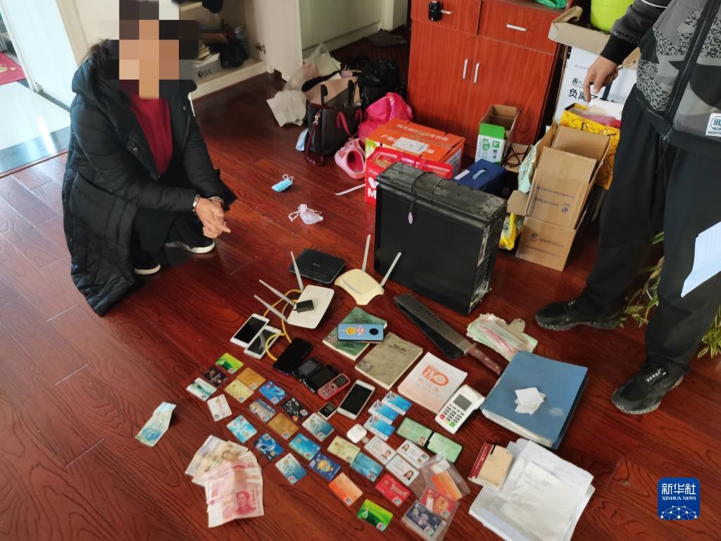 這是民警在一處窩點(diǎn)抓獲的犯罪嫌疑人及在現(xiàn)場(chǎng)查獲的部分犯罪工具。(受訪單位供圖)