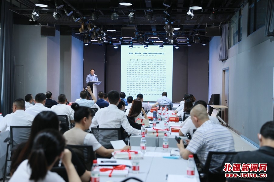“蒙古馬精神,是吃苦耐勞的奉獻(xiàn)精神、一往無前的進(jìn)取精神、不達(dá)目的決不罷休的奮斗精神。它的本質(zhì)是赤膽忠心的精神,發(fā)揚(yáng)的是忠于職守的精神,做到了不忘初心、牢記使命的現(xiàn)實(shí)途徑?!碑?dāng)天,內(nèi)蒙古自治區(qū)黨建研究會特邀研究員、呼倫貝爾市委原二級巡視員、原內(nèi)蒙古森工集團(tuán)組織部部長哈斯,為所有黨員講授“蒙古馬精神”主題黨課。
