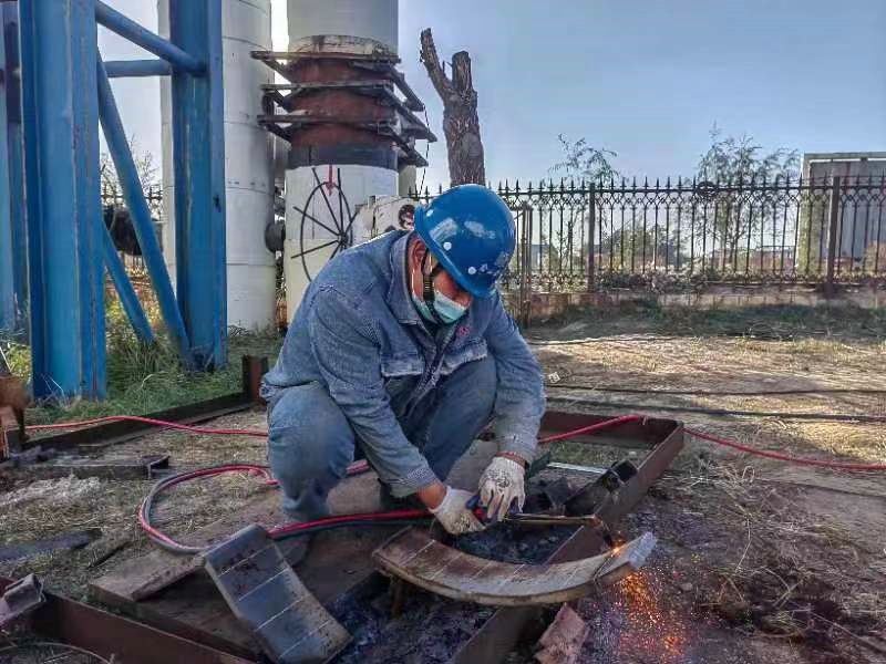 設(shè)備部檢修人員在檢查中發(fā)現(xiàn)供熱管道有三處堵板輕微變形,這會給今冬的安全穩(wěn)定供熱帶來極大隱患,必須馬上加固處理,對法蘭及螺栓進行全部焊接。焊接工作量很大,時間又緊,設(shè)備部馬上抽調(diào)4名焊工組成“焊接小分隊”加班加點展開搶修。氣溫已降到個位數(shù),寒風(fēng)中點點焊光閃耀,他們只想趕緊保質(zhì)保量的完成任務(wù),顧不上寒風(fēng)刺骨。設(shè)備黨支部書記安正平帶領(lǐng)支委和黨員成立了黨員突擊隊及時支援,解決了熱網(wǎng)檢修現(xiàn)場人員和技術(shù)力量不足的困境。