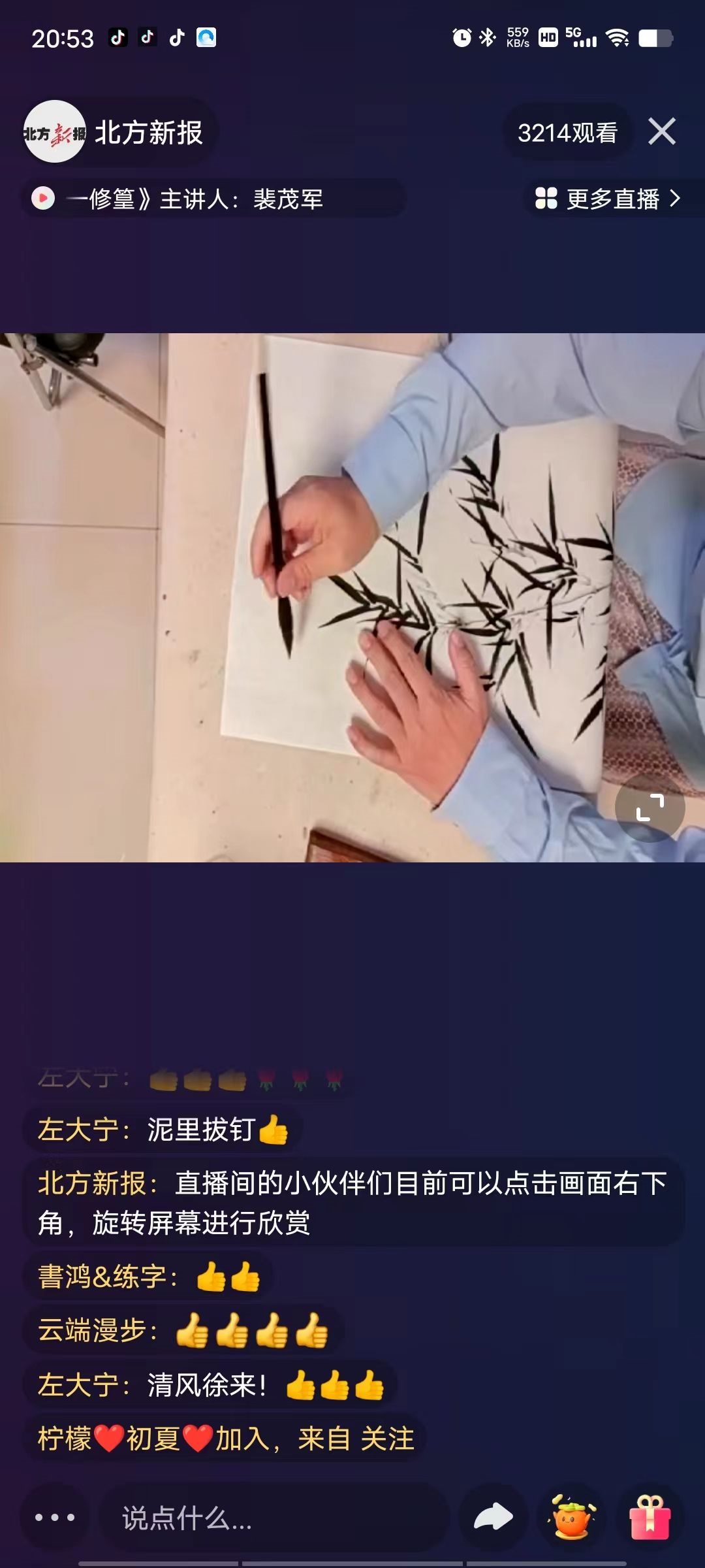 “我們這節(jié)課學(xué)習(xí)的是《明代花鳥畫一一修篁》……”10月13日晚,呼和浩特市書畫院花鳥畫講師裴茂軍線上課程開講,給廣大美術(shù)愛好者帶來一節(jié)有趣且實用的課程,備受網(wǎng)友喜歡。