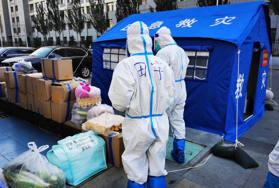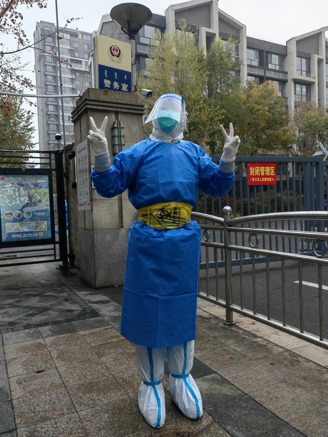 當(dāng)她所居住的樓棟隔壁單元出現(xiàn)陽(yáng)性病例后,前期一同工作的志愿者無(wú)法繼續(xù)上崗,田宇毅然承擔(dān)起整棟樓的工作量。