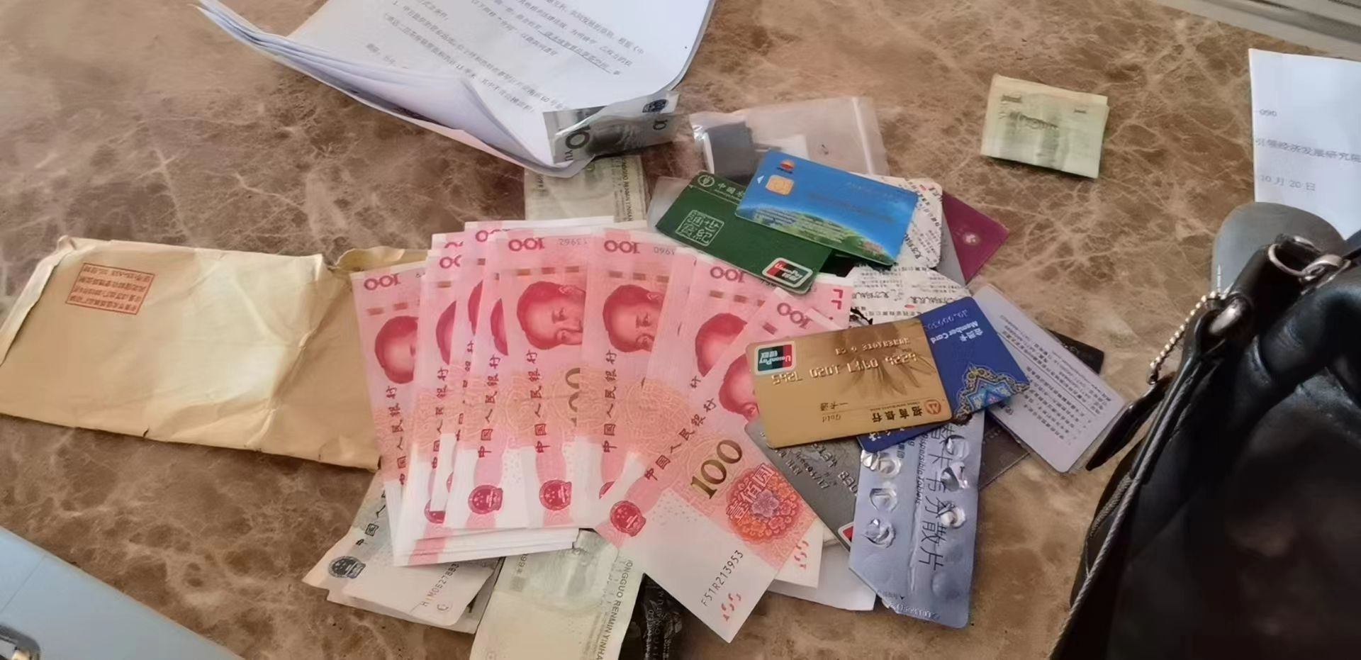 原來,當天15時許,呼和浩特市迎新路辦事處團結(jié)小區(qū)社區(qū)網(wǎng)格員聶霞和社區(qū)耿書記在團結(jié)小區(qū)東區(qū)物貿(mào)樓排查工作中,發(fā)現(xiàn)一垃圾箱旁邊有一個黑色的提包,打開一看,里面裝有近3000元現(xiàn)金和身份證、銀行卡以及多個貴重物品,想到失主一定很著急,聶霞馬上根據(jù)失主身份證上的信息聯(lián)系到失主所在的社區(qū)網(wǎng)格員劉淑萍,經(jīng)過幾番周折,終于與失主取得聯(lián)系。經(jīng)過電話溝通確認,半小時后,失主劉先生趕到團結(jié)小區(qū)社區(qū)居委會,認領(lǐng)了自己的物品。
