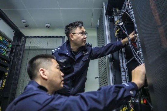 圖為歐陽軒乾與同事對服務(wù)器開展技術(shù)巡檢,及時(shí)排查故障隱患。