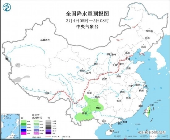 全國降水量預(yù)報圖(3月4日08時-5日08時)圖片來源:中央氣象臺網(wǎng)站