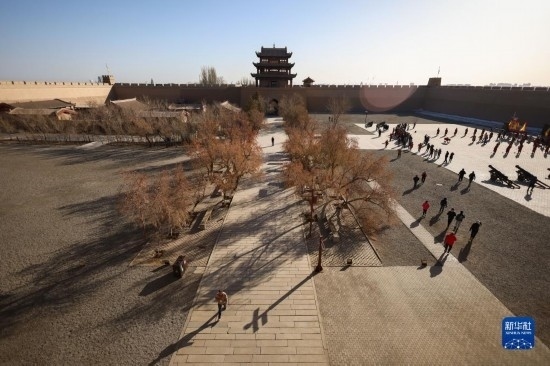 3月4日,游客在嘉峪關(guān)關(guān)城景區(qū)參觀游覽(無人機(jī)照片)。