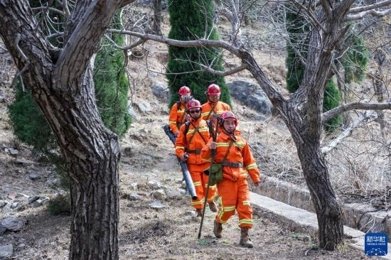 3月15日,長清區(qū)國有蓮臺山林場防火中隊隊員準備進入林區(qū)巡護。