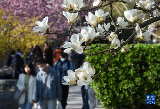 春回大地,北京各種花卉競相綻放,人們紛紛走到戶外,賞花踏青,樂享春光。