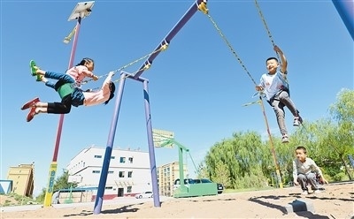 去年以來,甘肅省張掖市民樂縣把生態(tài)及地質(zhì)災害避險搬遷與城鎮(zhèn)化建設相結合,推動城鄉(xiāng)融合發(fā)展。圖為搬遷到民樂縣樂民新城的孩子們在小區(qū)內(nèi)玩耍。王 將攝(人民圖片)