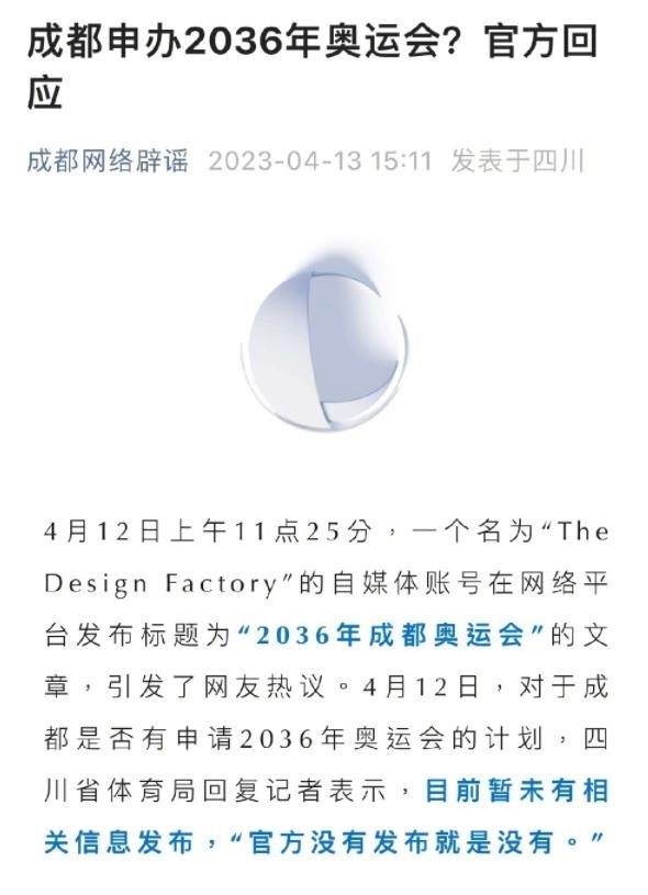 ·官方回應(yīng)成都申辦2036年奧運會:官網(wǎng)未發(fā)布就是沒有。