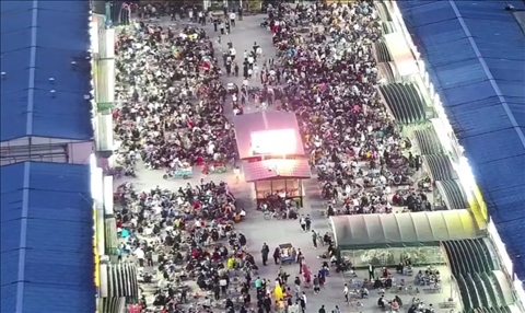 4月14日,夜幕降臨,前來淄博臨淄大院吃燒烤的人越來越多。(公共視頻截圖)
