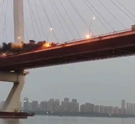 ·大貨車起火司機(jī)不畏危險駛離大橋,公交司機(jī)、消防聯(lián)手救援。