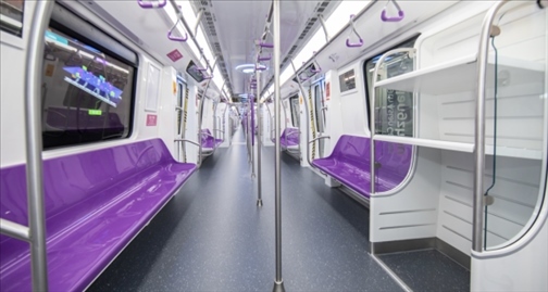 杭州4輛亞運(yùn)主題包車分別位于1號線、2號線、4號線、5號線4條地鐵客流最大的線路,以亞運(yùn)“潤澤”系統(tǒng)的紫色系和青色系為主色調(diào),打造沉浸式亞運(yùn)氛圍。
