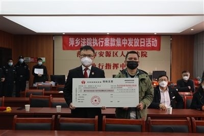 安源區(qū)法院為當(dāng)事人發(fā)放執(zhí)行案款。