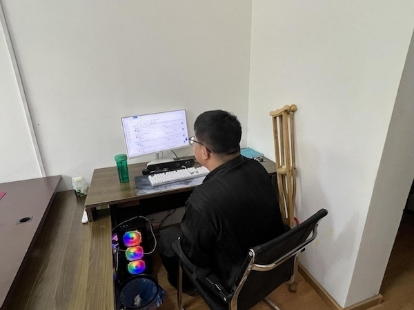 27歲的楊先生在創(chuàng)業(yè)孵化基地從事直播運營工作。去年,因為對電腦相關(guān)工作感興趣,他主動報名參加了渭南市殘聯(lián)開展的電子商務(wù)技能培訓(xùn)?,F(xiàn)在,他不僅能獲得可觀的收入,還有余力幫帶新人?!拔以陉兾鳉埣踩说娜豪镎J識了一個做客服的朋友,她也希望嘗試一下直播運營方向,我想幫助她,就帶著她一起工作?!睏钕壬院赖卣f。