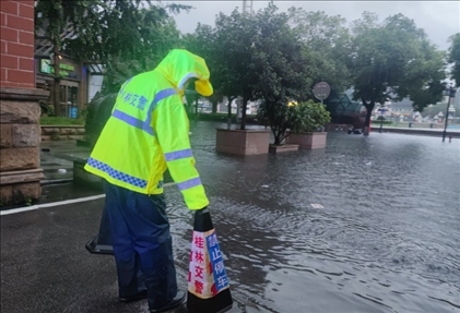 2023年5月22日,廣西桂林,受暴雨影響,城市道路積水嚴重。廣西桂林交警 圖
