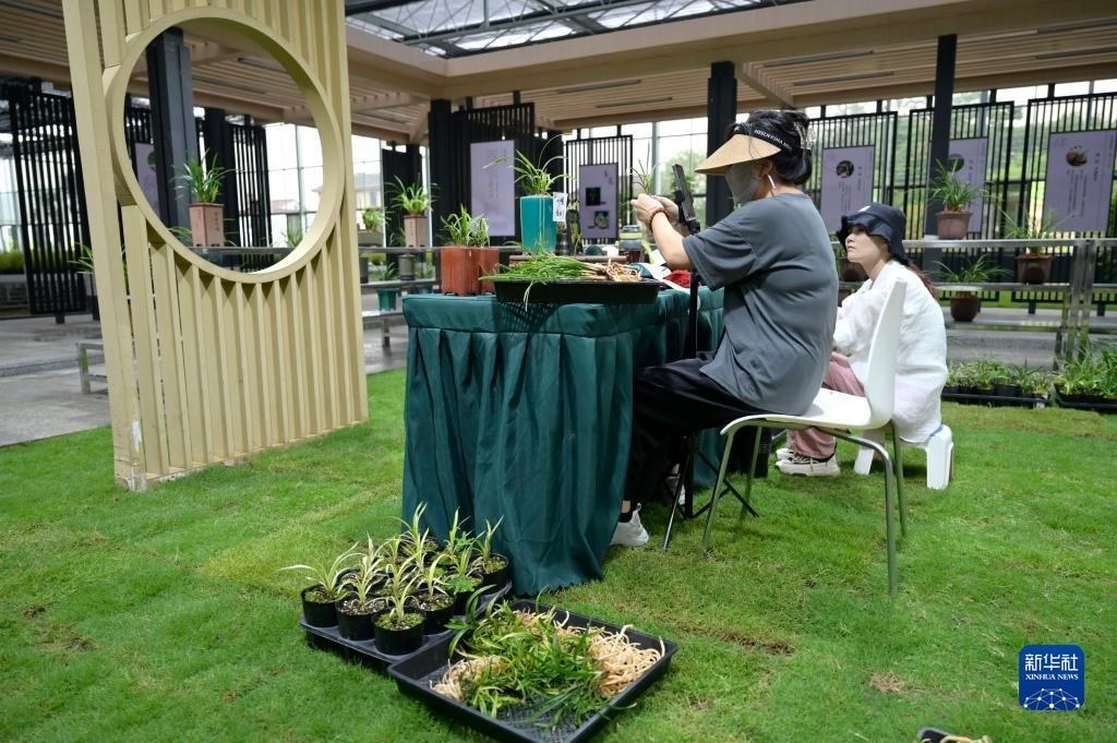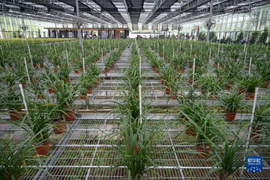 6月8日在浙江省紹興市柯橋區(qū)漓渚鎮(zhèn)棠棣村拍攝的蘭花數(shù)字工廠一景。新華社記者 才揚(yáng) 攝