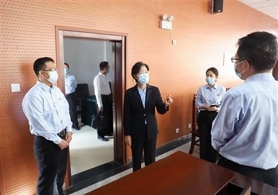 天津高院黨組書(shū)記、院長(zhǎng)李靜(右三)到靜海區(qū)法院調(diào)研,實(shí)地查看靜海鎮(zhèn)人民法庭。