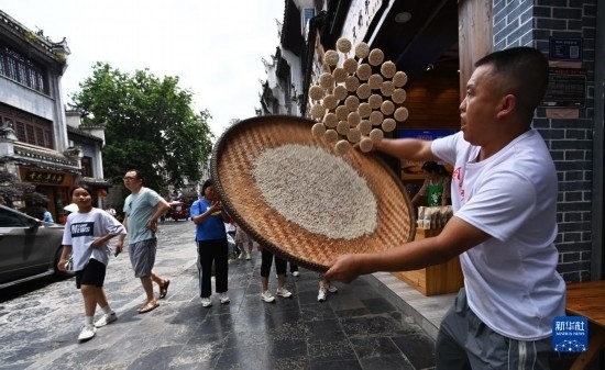 6月17日,一名商販在鎮(zhèn)遠古城加工苗家蝴蝶餅。