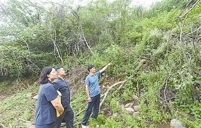 6月20日,安徽省明光市人民法院澗溪人民法庭法官頭頂炎炎烈日,穿越泥濘山道,徒步三公里,登上葛藤窩山,到一起環(huán)境污染責(zé)任糾紛案的現(xiàn)場查看樹木受損情況。