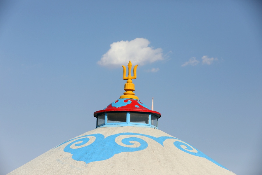 希拉穆仁草原,一朵白云從蒙古包上空飄過。 記者 張楊攝影