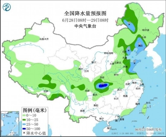 圖3 全國降水量預(yù)報圖(6月28日08時-29日08時) 圖自中央氣象臺網(wǎng)站