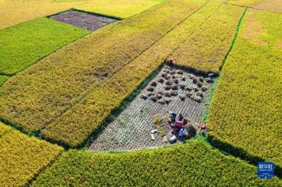 金秋時節(jié),各地農(nóng)民搶抓晴好天氣忙收獲,田間地頭一派繁忙景象。新華社發(fā)(袁福洪 攝)