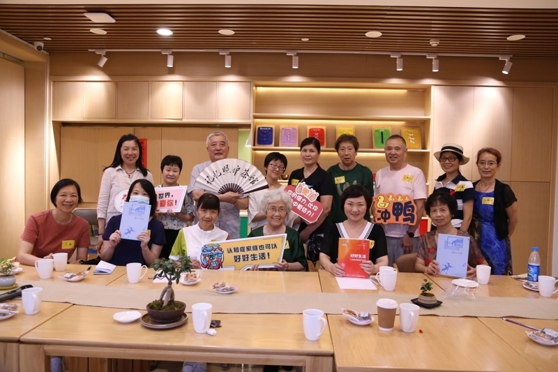 她希望能給他們提供彼此支持、交流經(jīng)驗的社交平臺。而她也漸漸發(fā)現(xiàn)最了解家屬需求的是他們自己。為什么不能由家屬自己來決定討論什么呢?于是,2020年,汪達民與顧春玲一拍即合,在延續(xù)國外“記憶咖啡館”理念的基礎(chǔ)上,開創(chuàng)了本土特色的認知癥家屬互助平臺:照護茶館。畢竟,茶館就是熱鬧的、七嘴八舌的,人們來這里消遣娛樂,釋放壓力。在照護茶館里,家屬們既是掌柜也是茶客,分享各種照護信息,這也是認知癥患者照護者們希望得以喘息的方式。