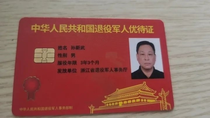 孫新武的退役軍人優(yōu)待證。浙江省紅十字會(huì)供圖