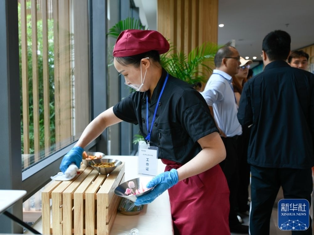 ↑這是7月14日拍攝的成都大運會主媒體中心媒體餐廳內菜品。新華社記者 胥冰潔 攝