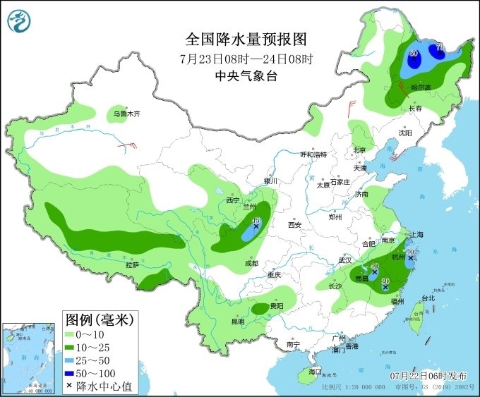 中央氣象臺今晨繼續(xù)發(fā)布暴雨藍色預警:今天白天到夜間,內蒙古東部、遼寧、吉林中西部、黑龍江南部、江西北部、湖南東北部等地部分地區(qū)有大到暴雨,內蒙古東南部、吉林西部、遼寧中西部等地部分地區(qū)有大暴雨(100~150毫米)。上述部分地區(qū)伴有短時強降水(最大小時降雨量30~60毫米,局地可超過70毫米),局地有雷暴大風等強對流天氣。