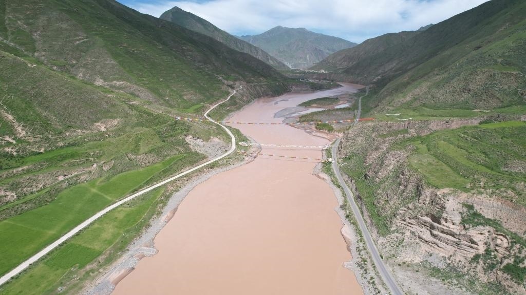 這是7月22日拍攝的通天河直門達(dá)水文站(無人機照片)。新華社記者劉詩平 攝
