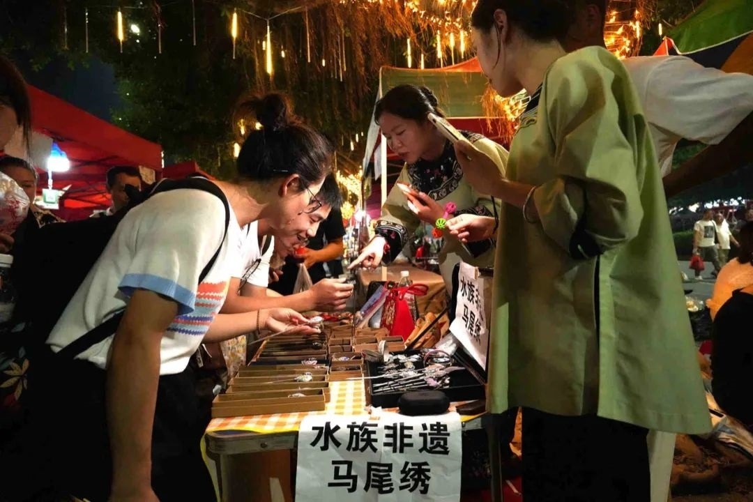 一位賣(mài)榕江卷粉、芋頭糕等特色小吃的小吃攤攤主說(shuō):“我們從早忙到晚,擺攤到凌晨1點(diǎn)鐘左右,人太多了,一天能賣(mài)幾百碗?!?/p>