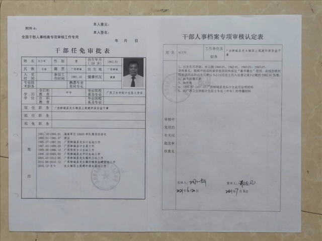 干部任免審批表。