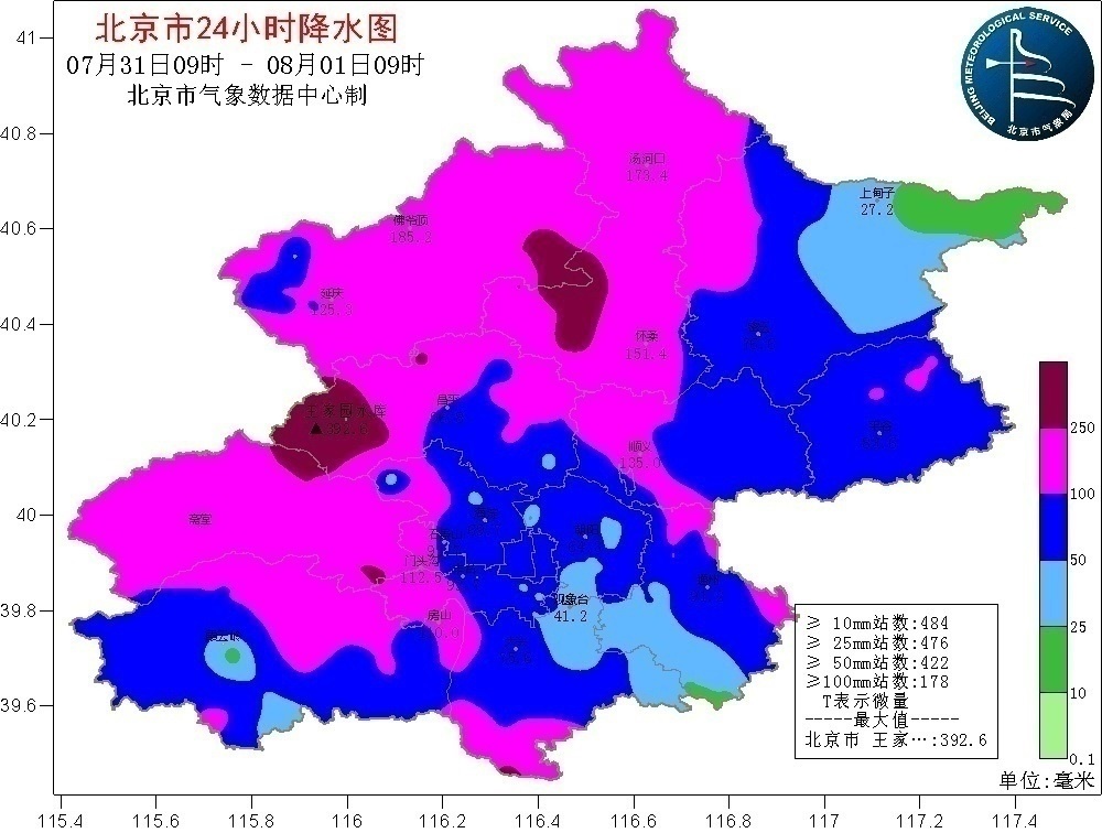 據(jù)北京市氣象臺(tái)消息,29日20時(shí)至8月1日7時(shí),北京地區(qū)全市平均降雨量260.0毫米,城區(qū)平均235.3毫米,房山區(qū)平均415.4毫米,門(mén)頭溝區(qū)平均471.1毫米;最大小時(shí)雨強(qiáng)出現(xiàn)在豐臺(tái)千靈山,31日10-11時(shí)111.8毫米/小時(shí)。