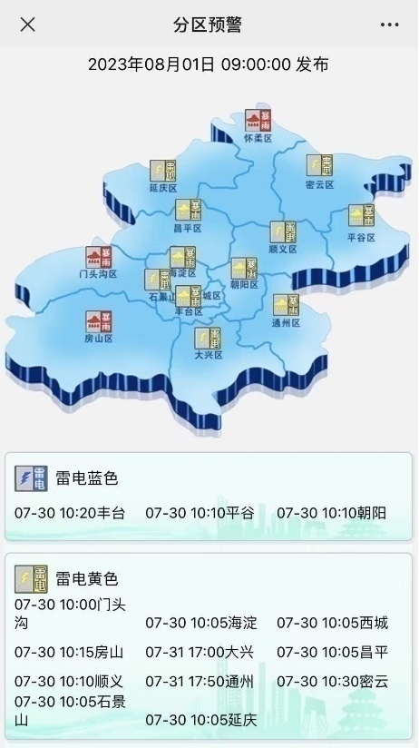 北京發(fā)布暴雨分區(qū)預(yù)警