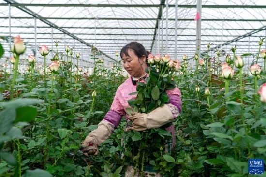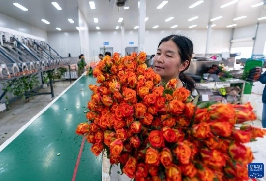 清晨,在云南省昆明市晉寧區(qū)云天化晉寧花卉產(chǎn)業(yè)現(xiàn)代化示范園內(nèi),品類各異的鮮花競相綻放,花農(nóng)們在現(xiàn)代化大棚里忙著采摘、搬運(yùn)。云天化晉寧花卉產(chǎn)業(yè)現(xiàn)代化示范園是集育苗、智能溫室大棚、水肥一體化、無土綠色栽培、全程數(shù)字化管理系統(tǒng),以及鮮切花采后處理、預(yù)冷儲(chǔ)藏等為一體的高標(biāo)準(zhǔn)設(shè)施農(nóng)業(yè)產(chǎn)業(yè)園區(qū),年產(chǎn)鮮切花1.6億枝。