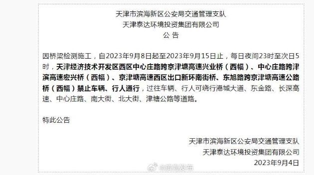 天津市濱城新區(qū)多座橋梁檢測(cè)施工 請(qǐng)注意繞行